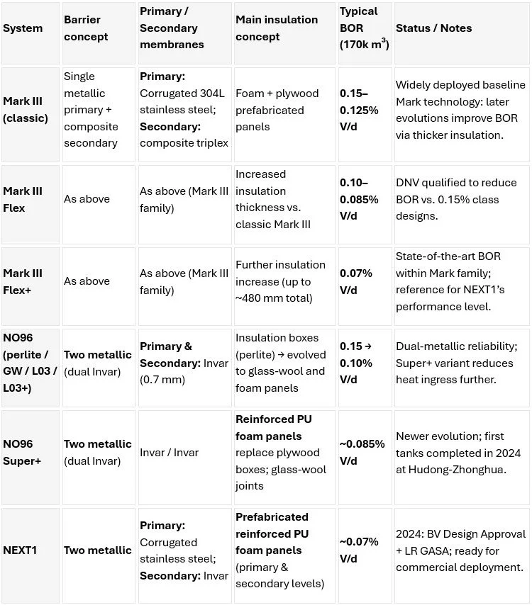 While Mark III variants are widely deployed due to strong thermal performance, some installations historically faced concerns around triplex bonding in the secondary barrier. By adopting a dual‑metallic approach, NEXT1 removes glue‑based concepts and directly targets reliability expectations from operators who favor NO96‑style redundancy.