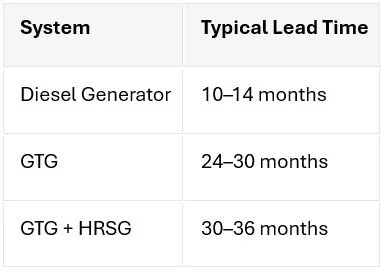 GTGs and HRSG systems require longer engineering, fabrication, and integration periods.